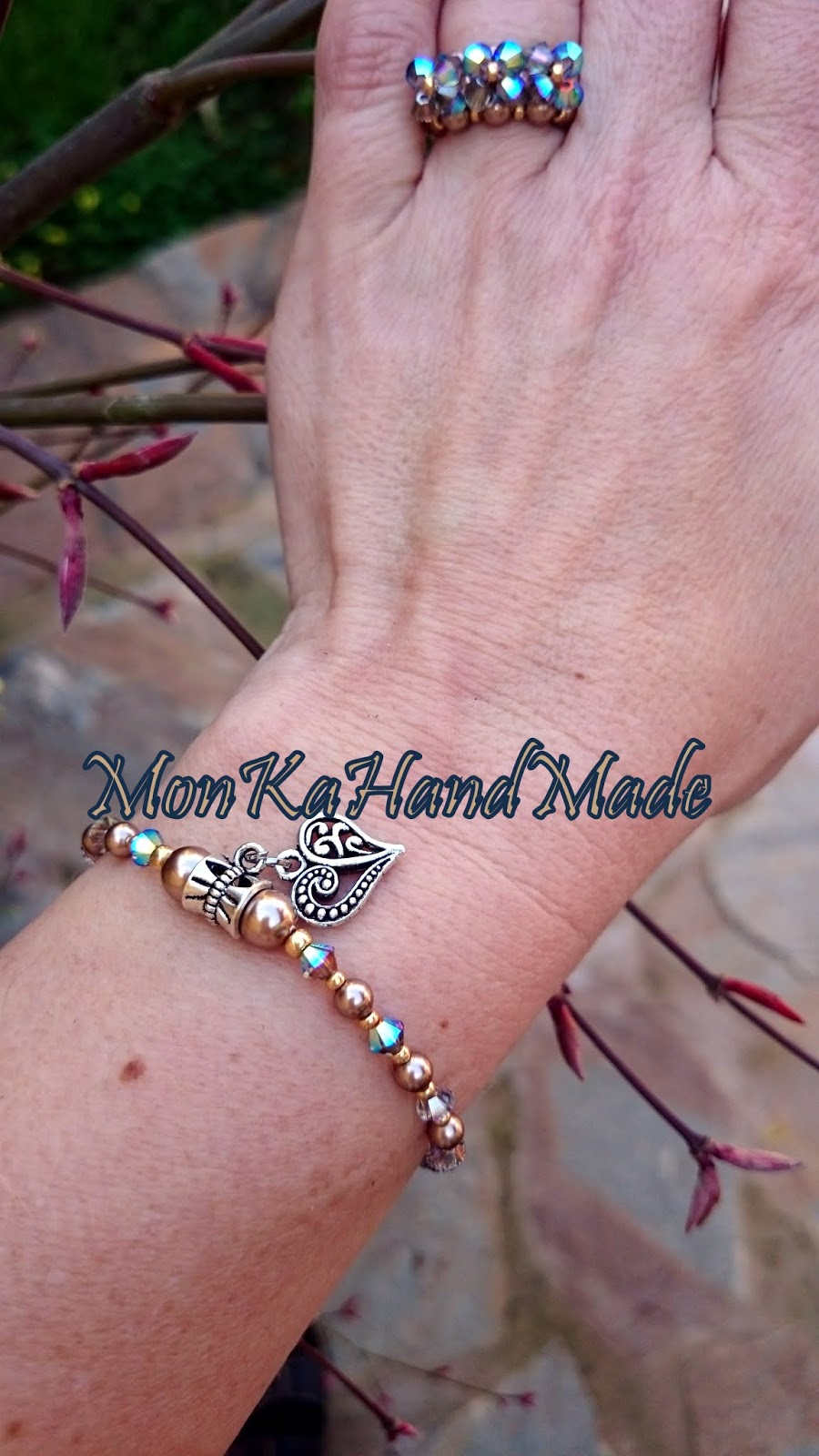 279. Celia 9€ Anillo elaborado con cristales y perlas de Swarovski. Se hace en otros colores por encargo. Pulsera a juego disponible.